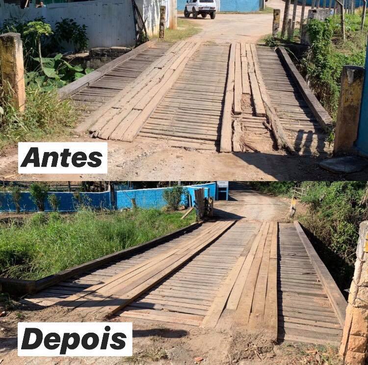 A ponte de acesso ao Bairro Engenho D'Água não foi apenas restaurada, como teve toda sua estrutura, que era de madeira, refeita, dessa vez de concreto, para proporcionar mais segurança aos motoristas. Fui o autor do pedido e também acompanhei ativamente a obra para que tudo saísse da melhor maneira. Além desta, a passarela de pedestres conhecida como Pinguela também foi reformada. Futuramente, nossa ideia é conquistar a verba para aumentá-la, possibilitando a construção de uma ponte para passagem de veículos.